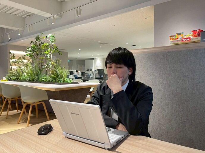 ・20代後半/男性※1 Account Executive(アカウントエグゼクティブ)の略。クライアントの広告主(アカウント)に対して、広告・プロモーションの企画立案や提案、実施施策の制作進行、その後のフォローまでを一貫して担当するポジションのこと。